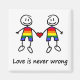L'amour n'est jamais faux t-shirts et cadeaux - design gay pride avec deux personnes aux couleurs arc-en-ciel tenant un coeur rouge.