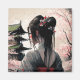 Conception d'une geisha créée par ordinateur. Image d'une femme avec une jolie coiffure et des fleurs dans les cheveux qui portent un kimono dans un design simple avec des lignes légères. Le design japonais dans le style AI - Midjourney. Les ornements rouges donnent à l'image quelque chose.