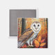 Cette oeuvre d'art présente une chouette de grange dans un cadre naturel en plein air à la saison de l'automne. Idéal pour les amateurs d'automne et de chouettes ! Le hibou est entouré de feuilles d'automne dans cette palette de couleurs chaudes aux tons rouge, orange et marron.