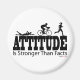 L'attitude est plus forte que les faits le design de t-shirt triathlon. Portez votre attitude avec ce t-shirt du jour de la course. Ce design de triathlon est aussi disponible sur les autocollants, les sweatshirts, les boutons et plus encore ! Vous pouvez faire tout ce que vous voulez. Qu'il s'agisse d'Ironman, de placer dans votre groupe d'âge, vos dossiers personnels ou de terminer, l'attitude est plus forte que les faits! Fait un grand cadeau pour moins de 50 $.