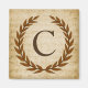 Une délicate couronne de laurier est posée sur un arrière - plan vintage de partitions de style romain classique. Ce design est personnalisé avec le monogramme "C" dans une tonalité de sienne riche.