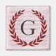 Une délicate couronne de laurier est posée sur une douce feuille vintage rose arrière - plan dans le style romantique classique. Ce design est personnalisé avec le monogramme "G" dans un ton gris fusain.