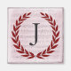 Une délicate couronne de laurier est posée sur une douce feuille vintage rose arrière - plan dans le style romantique classique. Ce design est personnalisé avec le monogramme "J" dans un ton gris fusain.