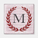 Une délicate couronne de laurier est posée sur une douce feuille vintage rose arrière - plan dans le style romantique classique. Ce design est personnalisé avec le monogramme "M" dans un ton gris fusain.