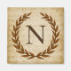 Une délicate couronne de laurier est posée sur un arrière - plan vintage de partitions de style romain classique. Ce design est personnalisé avec le monogramme "N" dans une tonalité riche en sienne.