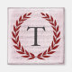 Une délicate couronne de laurier est posée sur une douce feuille vintage rose arrière - plan dans le style romantique classique. Ce design est personnalisé avec le monogramme "T" dans un ton gris fusain.