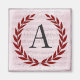 Une délicate couronne de laurier est posée sur une douce feuille vintage rose arrière - plan dans le style romantique classique. Ce design est personnalisé avec le monogramme "A" dans un ton gris fusain.