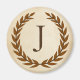 Une délicate couronne de laurier est posée sur un arrière - plan de papier parchemin dans le style romain classique. Ce design est personnalisé avec le monogramme "J" dans une tonalité de sienne riche.