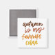 Ce design comporte l'expression "l'automne est ma couleur préférée", présentée dans un script design écrit à la main. Le texte est organisé en un alignement centré et empilé avec chaque mot occupant sa propre ligne, créant un flux visuellement agréable de haut en bas. La palette de couleurs est un dégradé de teintes d'automne chaudes, passant du marron foncé en haut pour le mot "automne" à un orange rouille plus clair pour "is my", et enfin à un jaune vif pour "favorite color". Cette transition de couleur reflète non seulement le riche spectre du feuillage d'automne, mais renforce aussi le sentiment exprimé dans l'expression.