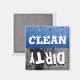 Cute et unique Lave-vaisselle propre et sale aimant cuisine avec bulles étincelantes bleues avec le mot "NETTOYÉ" en texte blanc sur une moitié et un arrière - plan grungy avec le mot "sale" dans gros, facile à voir grungy texte sur l'autre moitié. La solution amusante pour savoir quand charger et quand vider le lave-vaisselle.