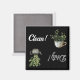 Cet aimant pour lave-vaisselle dit propre et sale en texte script à côté des illustrations d'aquarelle mignonnes d'une tasse blanche et d'une tasse grise remplie de plantes ménagères vertes, sur un arrière - plan noir. Réversible pour indiquer si la vaisselle a été lavée ou non, cet aimant à tongs est un ajout pratique à n'importe quelle cuisine.