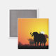 Un troupeau de buffles du Cap se tient en silhouette contre les feux du soleil couchant. L'art informatique de Kathie Miller.