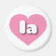 Cet aimant est doté d'un coeur rose vif contenant les lettres coques inférieures arrondies et audacieuses, blanches, une abréviation ludique pour la Louisiane, l'État pélican OU Los Angeles, la ville des anges.