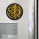 Cette oeuvre présente une gravure captivante d'un dragon respirant des flammes, ornée de décorations dorées complexes. L'imagerie puissante du dragon symbolise la force, la férocité et les prouesses mythiques. Les ornements dorés ajoutent un élément d'opulence et augmentent la présence du dragon. Immergez-vous dans le monde fascinant de cette oeuvre d'art et laissez le souffle enflammé du dragon allumer votre imagination.