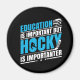 Aimant amusant de hockey avec texte bleu et blanc sur un arrière - plan noir dit L'éducation est importante Mais le hockey est important!