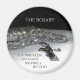 Cet aimant rond a une photo en noir et blanc (j'ai pris) du chapelet avec un crucifix flou de Jésus sur la croix et une belle citation de Saint Louis de Montfort (1673-1716), un prêtre catholique français : Le Rosaire est un trésor inestimable inspiré par Dieu.