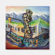 Cela me rend triste et furieux de voir tant de centres créatifs merveilleux de Vancouver disparaître dans la demande consomptive de biens en copropriété. Le Waldorf est un endroit tellement cool. J'aimerais que les développeurs puissent construire autour de lui. Que se passera-t-il lorsque cet endroit sera détruit et remplacé par un tas de résidences en béton boisé avec vue sur la montagne ? Où les habitants iront-ils rire, rencontrer d'autres, se plaindre des prix de l'immobilier, de la condotamination et de Vancouver en général ? Je suppose qu'il y aura d'autres boîtes, électroniques et autres, mais aucune n'a autant de charme que ce bar Tiki anthropomorphique rempli de comédiens. Je l'ai peint au crépuscule, avec des lumières intérieures chaudes. Adios, Waldorf.