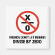 Les amis ne laissent pas leurs amis se diviser par zéro. Perdre le tissu de l'espace-temps et imploser l'univers n'est qu'une mauvaise affaire pour tout le monde. Plutôt irresponsable. Grand cadeau ou tshirt pour les consciences scientifiques et mathématiques.