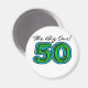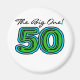 Un grand nombre de 50 en bleu cool, texte vert est présenté sur nos grands T-shirts à 5-0 ans, tasses, boutons et autres vêtements à 50e anniversaire.C'est le grand !
