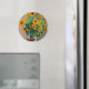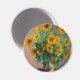 Magnet représentant la peinture à l’huile de Claude Monet Bouquet of Sunflowers (1881). Beaux tournesols dans un vase bleu au-dessus d'une table rouge. Un grand cadeau pour les amateurs d'impressionnisme et d'art français.