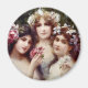 Trois belles jeunes femmes ornées de jolies fleurs représentent les trois grâces. Cet art vintage romantique est signé Emile Vernon.