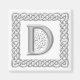 Ce joli design d'aimant présente une bordure de noeud celtique et une lettre monogramme D dans un effet d'argent en relief.