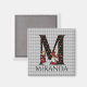 Whimsical Wonderland sur le thème de l'aimant vintage Alice et la Reine des Coeurs des illustrations de couleur de caractère avec une grande lettre / initiale M avec un noir / or / carte rouge suites remplir le motif sur un arrière - plan arlequin gris vintage. Personnaliser davantage avec du texte de nom personnalisable