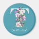 Élégant faux blanc lettre métallique T monogramme décoré de belles et sophistiquées magnolias blanches et magenta, complété par de délicates fleurs de remplissage violet et des plantes vertes. C'est juste exquis ! Le nom personnalisé en bas unifie le design, le rendant unique et aussi un cadeau parfait personnalisé pour un fabuleux pour elle. L'arrière - plan turquoise est personnalisable.