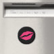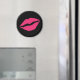 Des lèvres roses amusantes et amusantes sur un arrière - plan noir décorent cet aimant.