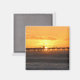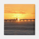 Vue imprenable sur le coucher du soleil derrière un pair en Californie avec la lumière décolorante qui souligne une mer agitée.