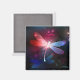 Lumineuse, volante, libellule rouge, avec des ailes transparentes et détaillées sur arrière - plan sombre, nocturne, lumineux avec plantes tropicaux et lucioles. libellule rouge.