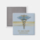Aimant Light Blue Faux Gold Foil Stripes Medical Caduceus