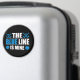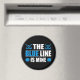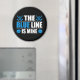 L'aimant Hockey Blue Line comporte des rondelles bleues et des bâtons de hockey avec un texte blanc et bleu qui dit The Blue Line is Mine.