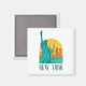 Un bel aimant représentant la célèbre ville de New York avec son skyline unique et sa silhouette aux États-Unis. Ce design présente une illustration stylisée du paysage urbain unique de la ville avec tous les célèbres bâtiments et monuments et la statue de la liberté.