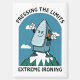 Un dessin amusant d'un fer à dessin animé avec un visage déterminé et les bras et les jambes debout au sommet d'une montagne verte avec de la neige blanche. Derrière lui se trouvent des nuages blancs et moelleux sur un ciel bleu. En haut et en bas de l'image on peut lire 'Pressing The Limits' et 'Extreme Ironing'. en texte noir. Ce sont deux modèles que vous pouvez utiliser tel quel ou remplacer par votre propre texte si vous le souhaitez. Ou supprimez les mots à laisser en blanc.