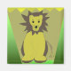 Un design amusant avec un lion de la jungle. Un aiguillon sur un arrière - plan vert et marron.