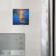 Golden light shimmers across deep blue water in an expressive, impressionistic reflection of twilight.
