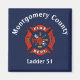 Stylish design for firehouses, firefighters and their families, feobjets red generic fire department on dark blue background. Customize with city or county department details or firefighter name in modern font