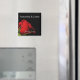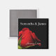 Attirer et chic rose rouge à longue tige sur tuxedo noir arrière - plan aimant mariage personnalisé avec vos noms et date.