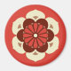 Aimant rond design de mandala japonais qui représente une fleur de lotus stylisée, symbolisant la pureté, éveil spirituel et fidélité - fleur en mandarine orange, crème, chocolat et or sur un arrière - plan orange mandarin