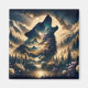 Aimant Loup hurlant sur la lune une nuit nuageuse