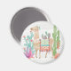 A soft, watercolor with a llama standing among cacti Artist : Mary Urban