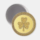 Cet impressionnant aimant présente une image graphique d'une pièce d'or avec deux nuances d'or. Le cercle extérieur a une texture rugueuse. À l'intérieur du cercle intérieur de la pièce se trouve un shamrock doré texturé composé de 3 feuilles et d'une tige.