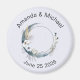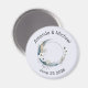 Enregistrez la date / aimant souvenir avec une illustration mystique. Un croissant de lune bleu foncé avec un contour de cercle mince élégant et des fleurs blanches en fleurs le long de ses bords.
