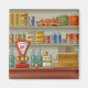 Magasin rétro en style boisé avec balance, caisse enregistreuse, divers aliments et chat rouge couché. L'illustration graphique d'origine. Veuillez consulter d'autres produits de ma collection Retro Store.