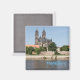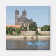 Une photographie de l'Elbe avec la cathédrale et le Fürstenwall à Magdeburg, Saxe Anhalt, Allemagne est présentée sur cet aimant souvenir. Le texte est personnalisable ou amovible. Les magnets font un cadeau idéal, ou un cadeau personnel pour coller sur votre réfrigérateur ou votre meuble de rangement. Cet aimant carré est de 2" x 2" (5cm x 5cm) ou vous pouvez choisir parmi un aimant rond de différentes tailles.