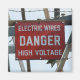 Panneau de danger haute tension sur une tour de service haute tension.