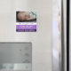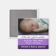 Carré, aimant photo 2" x 2" pour annoncer la naissance/l'arrivée de votre nouvelle petite fille, conçu dans un motif à bandes violettes. L'utilisation d'une image avec le bébé pose horizontale fonctionnera mieux pour s'adapter à cette conception. Si l'image ne se positionne pas bien au début, cliquez sur "customiser" pour déplacer la photo.