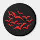 Cet aimant présente une collection d'images simples de chauves-souris volant ensemble dans un motif nuageux. Les chauves-souris sont rouges et l'arrière - plan est noir. Les enfants adoreront ce design mignon.