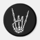 Dessin en stylo et encre d'une main squelette dans le geste de salut de roche lourde. Graphique B/W, sur t-shirts, sweat - shirts à capuche, boutons, autocollants, cartes, cadeaux.